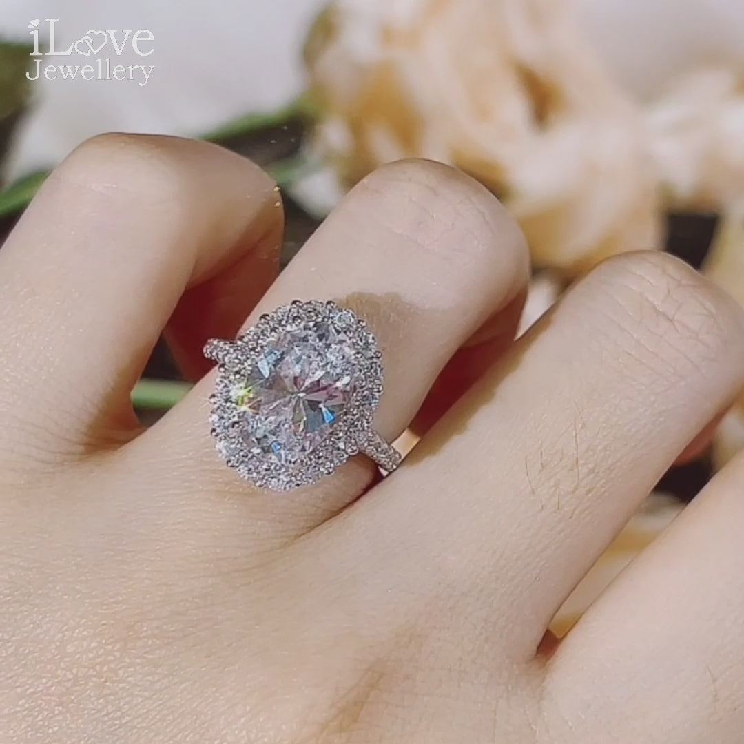 Blushing Oval Halo Ring ILR021 Pink