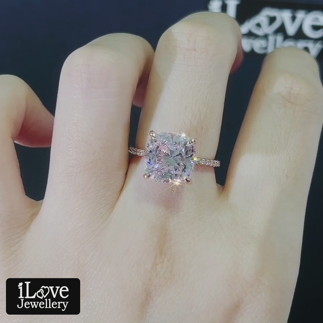 Pink Cushion Solitaire Ring Premium Cubic Zirconia Rose Gold Malaysia